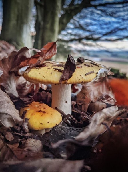 Bajo la hojarasca que viste al bosque con resplandores rojos, naranjas y un sin fin de variedades de amarillo y tonalidades de café que nunca pensé existirían , un ballet silencioso comienza. Las setas de invierno despliegan tímidamente sus sombrillas abriendo su paso entre las hojas que engalanan su danza con los colores de otoño.