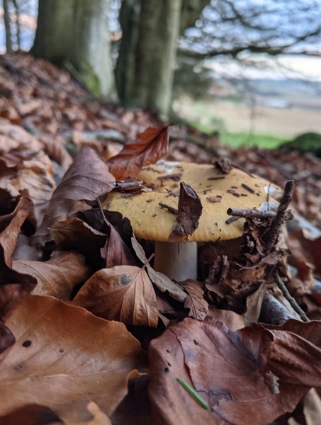En este día de intermitente resplandor, las setas de invierno reclaman su acto de entre las hojas caídas, ofreciendo una coreografía única, un regalo visual que solo el bosque en su quietud es capaz de ofrecer.
